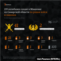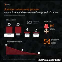 На момент публикации этого материала Idel.Реалии установили имена 139 погибших в Макеевке из Самарской области. Это больше трети всех военнослужащих из Самарской области, о смерти которых стало известно.